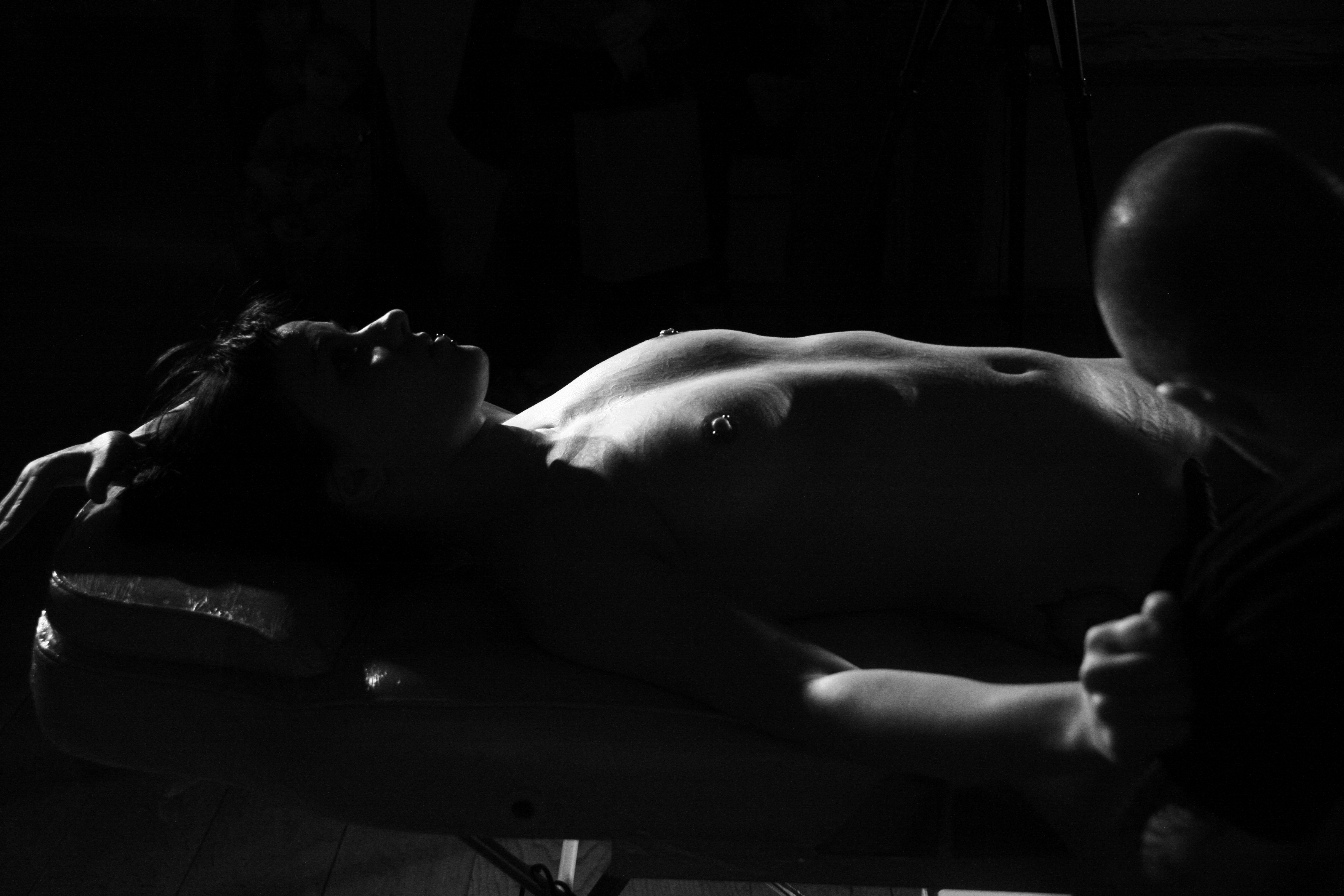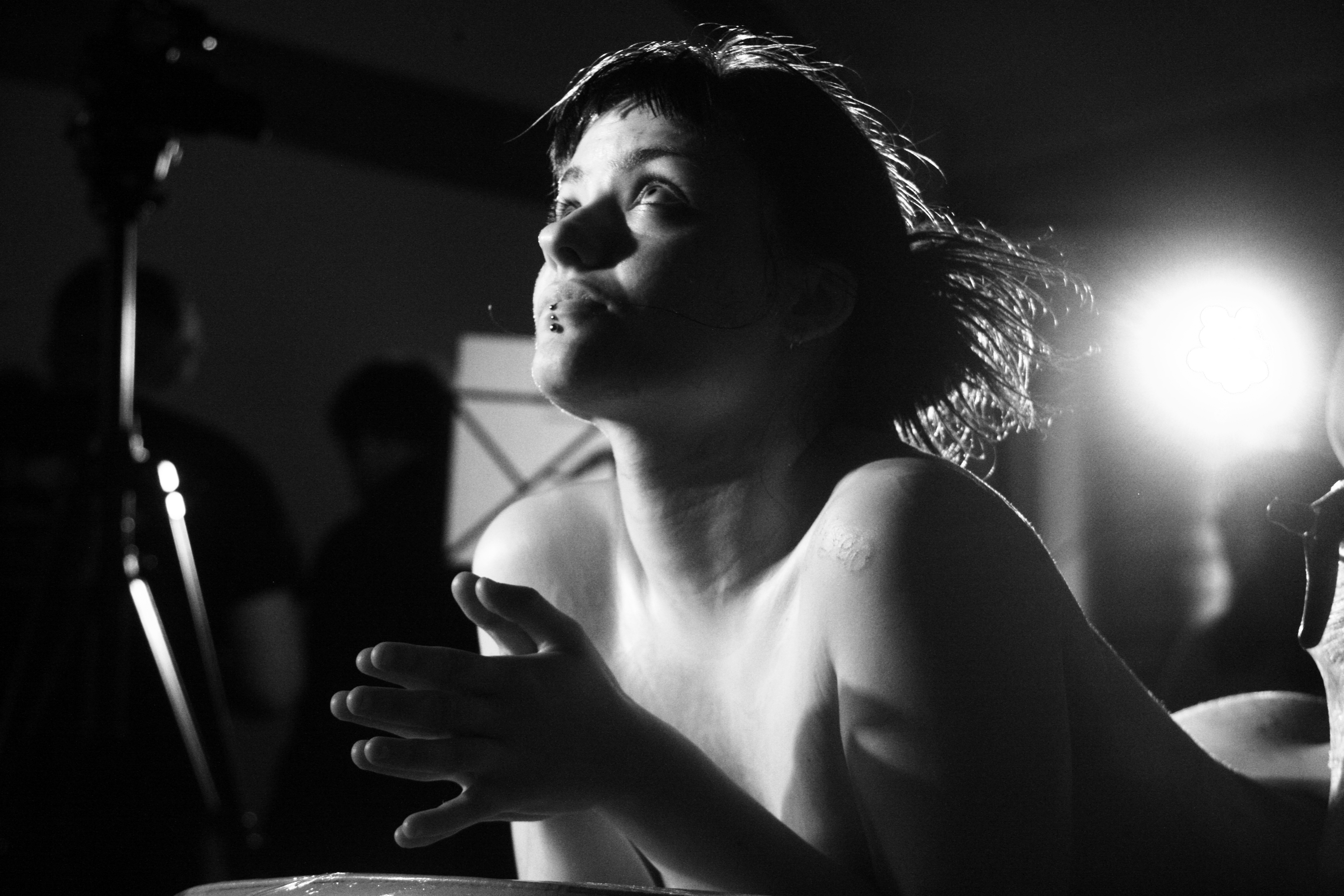 I was asked by one of our friends after the performance whether I felt like I was performing during ‘Written in Skin’. I must admit I had gone in with the intention of performing in a way, paradoxically with the idea of anti-performance, a much less self-conscious method than if I was stepping into a character or costume as I usually do. I wanted to be as emotionless as possible and Loren and I discussed not even speaking to each other during the piece. We’d devised a series of simple gestures that could communicate if I needed a break, if somewhere was hurting too much or if I needed to readjust my position. There were many questions raised regarding the intricate simplicity of this performance beforehand. Tiny details such as would I wear make-up? Should I wear knickers? What clothes should I wear at the beginning of the performance? How these items would set the tone for the rest of the piece? Should my toes nails be painted? Should I shave my body? How exactly would I undress and with what level of intensity/vulnerability? These were all very important questions that set a mood and framed our intentions, minute details that affect the ambience in exactly the same way that the music or word choice would.